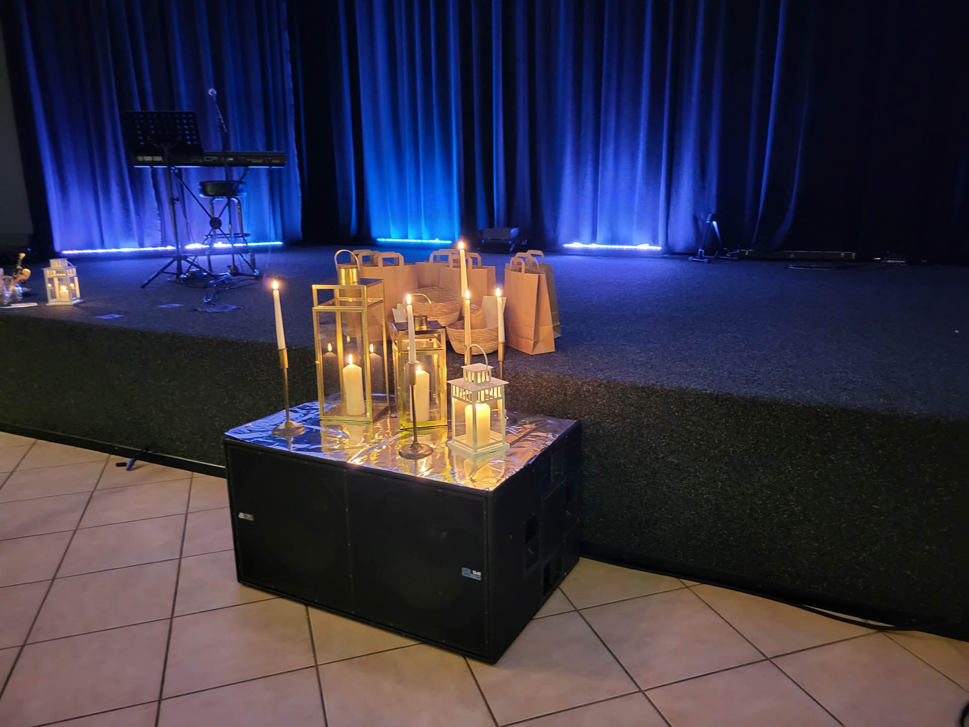 Pour la soirée Gospel au Gospel Center Oron, Catani Création a réalisé une décoration chaleureuse et joyeuse. Avec des lumières douces, des fleurs et des éléments choisis avec soin, l’ambiance mettait en valeur le lieu tout en restant simple et accueillante. Une déco pensée pour accompagner l’événement en toute harmonie.